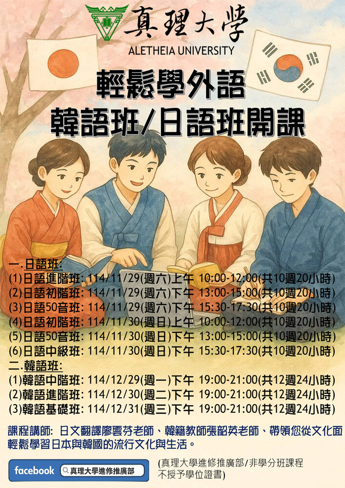 真理大學華語文中心特別為華語初學者設計「初級華語+淡水觀光課程」,讓您在輕鬆愉快的環境中學習中文,同時探索台灣的美好風景與文化魅力!