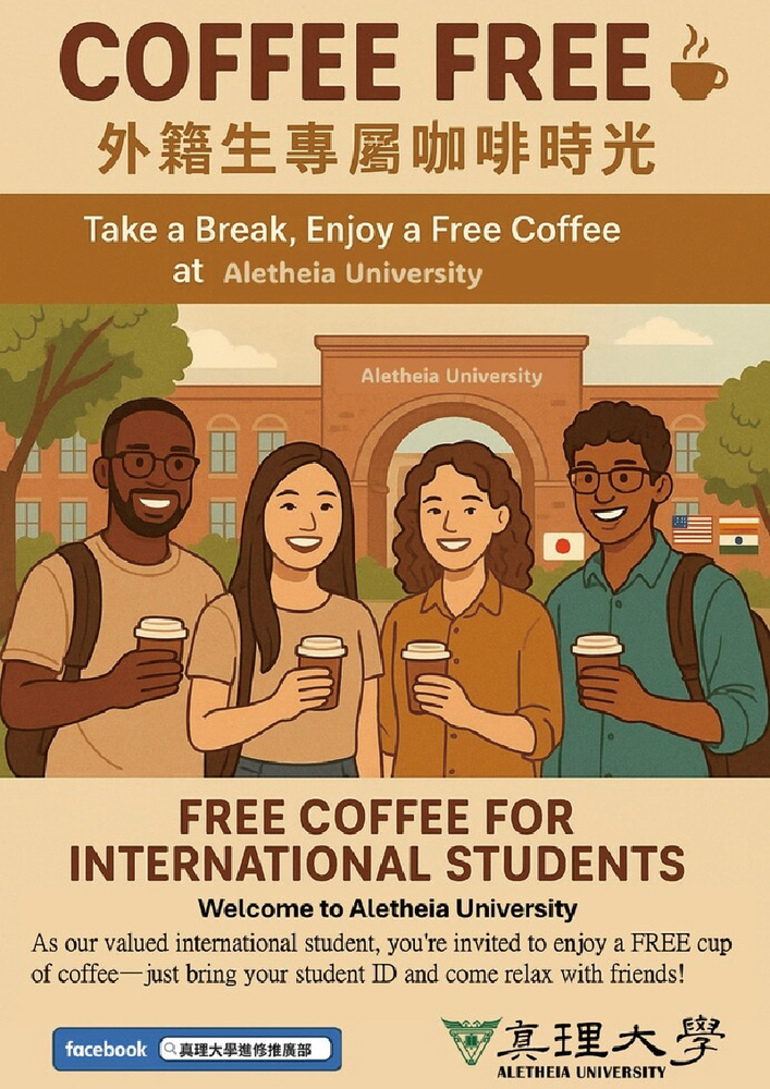 親愛的國際學生們,熱烈歡迎您來到我們的校園!進修推廣部 (School of Continuing Education) 誠摯邀請所有新舊外籍學生,前來享受一杯香醇暖心的免費咖啡。