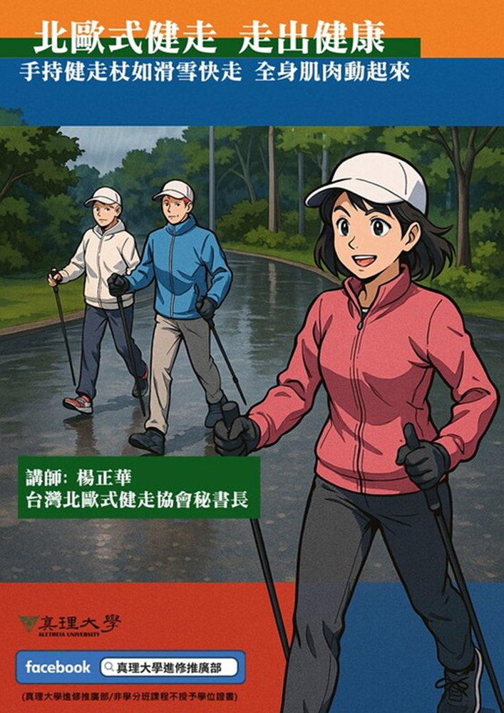 北歐式健走是一種簡單易學、安全有效的全身運動,有助於預防肌少症、骨鬆駝背、失智症、四高、憂鬱症、髖膝踝及坐骨神經痛、巴金森氏症等等。